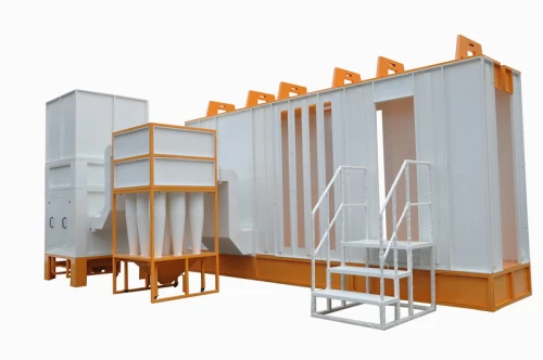 Este é um multi-ciclone reciclagem de pequenos sistemas de pulverização automática, cabines de pulverização feitas de chapa de aço inoxidável, design cabine de pulverização tem oito armas automáticas, duas aberturas de armas de mão.